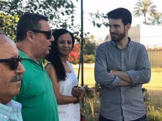 Moyano, acompañado de miembros de la agrupación de Ciudadanos en Sevilla Este, se ha reunido con la Asociación de Propietarios de Jardines del Edén, con los que ha podido "comprobar cómo el alcalde, el socialista Juan Espadas, tiene olvidados a estos vecinos, algo que viene ocurriendo cada día en más barrios de la ciudad".