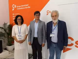 El portavoz de Cs en el Ayuntamiento de Sevilla, Álvaro Pimentel; la secretaria general de UPTA Andalucía, Inés Mazuela, y el secretario de organización, José Lorenzo. - CIUDADANOS