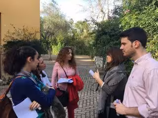 Javier Moyano, concejal de Ciudadanos en el Ayuntamiento de Sevilla y encargado del distrito Sur, acompañado de la diputada andaluza Marta Escrivá, ha visitado el Colegio España, donde ha reclamado "la creación de una puerta de entrada y otra de salida a la avenida de la Borbolla, para garantizar la seguridad de los menores".