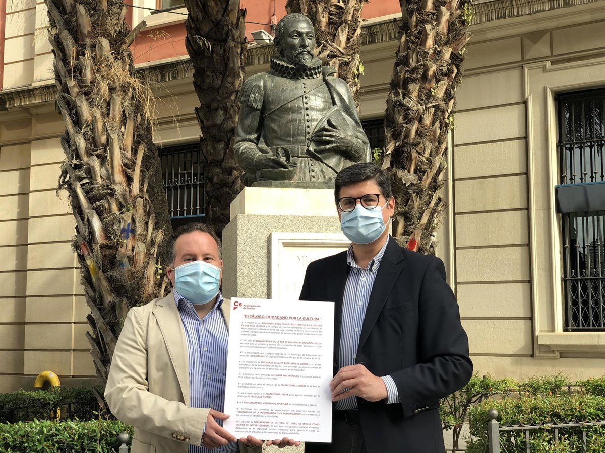 El portavoz de Ciudadanos (Cs) en el Ayuntamiento de Sevilla, Álvaro Pimentel, y el concejal de la formación naranja, Lorenzo López Aparicio, han presentado este viernes una iniciativa de su grupo municipal con motivo de la celebración del Día del Libro. Se trata del proyecto 'Decálogo Ciudadano por la Cultura' con el que "buscamos incentivar la lectura entre todos los sevillanos, especialmente entre la población más joven, y poner en marcha un Plan de Dinamización de la Red de Bibliotecas Municipales", ha explicado Pimentel.