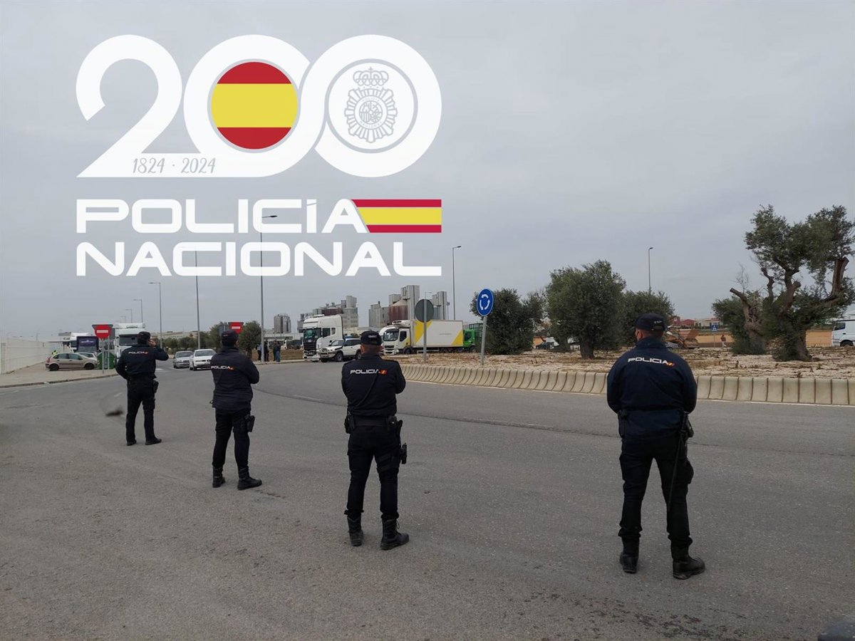 Agentes de la Policía Nacional durante la detención en Alcalá de Guadaíra (Sevilla) de cuatro individuos vinculados al robo de mercancías a camioneros. - POLICÍA NACIONAL