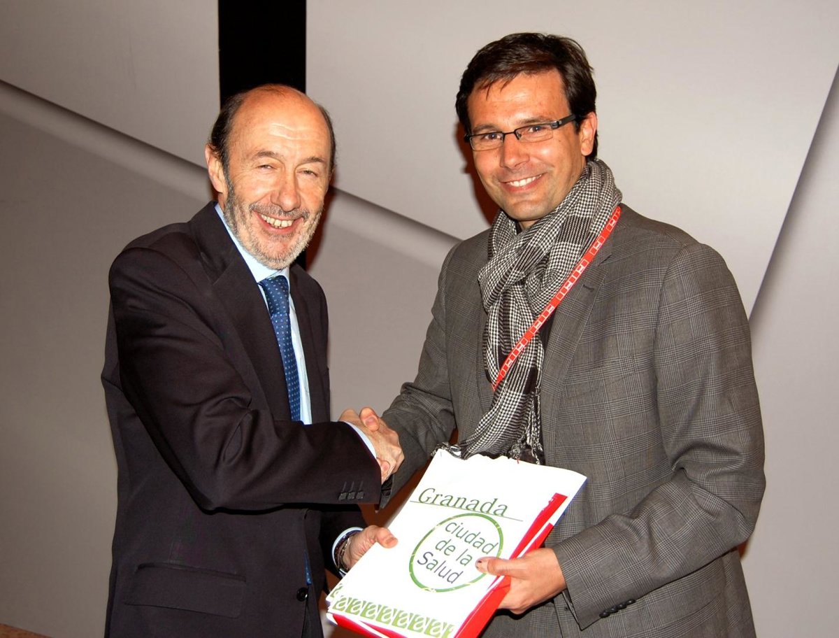 El candidato del PSOE a la Alcaldía de Granada, Francisco Cuenca, ha entregado al vicepresidente primero del Gobierno, Alfredo Pérez Rubalcaba, en el marco de la Convención Municipal que el PSOE ha celebrado este fin de semana en Sevilla, su proyecto para atraer a empresas del sector sanitario a la capital y generar empleo.