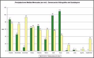 En lo que respecta a las distintas provincias, se mantienen "los valores históricos", con "ligeras alzas" en las provincias de Huelva y Sevilla, y con disminuciones más acusadas en las de Ciudad Real y Granada, provincias en las que menos ha llovido este año.