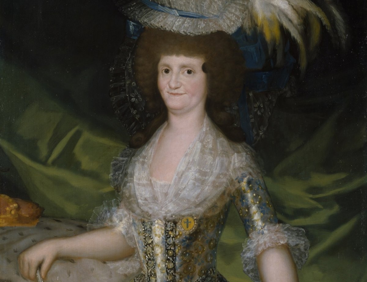 En el mueble de la izquierda aparecen los mismos atributos que se observan en el retrato de Carlos IV, la corona y el manto de armiño. Ambas pinturas tuvieron un coste de 4.000 reales de vellón, tal y como se recoge en el recibo firmado por Goya el 11 de mayo de 1789, y en el que se refleja el acuerdo aceptado por el pintor de realizar las obras sin la participación de sus ayudantes.