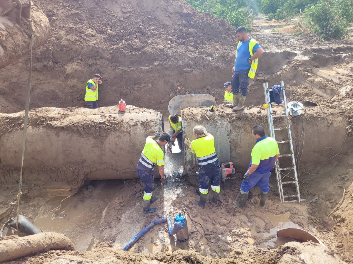 Aguas del Huesna ha detallado que las operaciones de reparación de la avería localizada en la red de transporte de alta presión se completaron durante la jornada de ayer. Así, técnicos del consorcio iniciaron pasadas las 23,00 horas las labores para el llenado de la conducción.