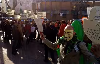 Además de con cántico de villancicos, la concentración, que se ha desarrollado "sin incidentes", ha ido acompañada de pancartas, pitadas y "el tradicional disfraz de político corrupto".