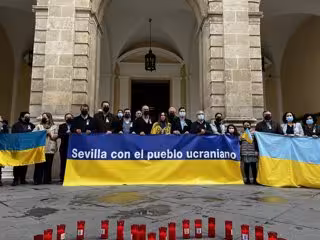 Sevilla se ha sumado este sábado en la Plaza Nueva, a las puertas de la Casa Cosistorial, a la concentración convocada por Eurocities en apoyo al pueblo ucraniano, en un acto que ha contado con la presencia del alcalde de Sevilla, Antonio Muñoz (PSOE), de representantes de los grupos políticos del Ayuntamiento, así como de distintos de colectivos vinculados a Ucrania, y en el que se ha leído una declaración institucional acordada por todos los grupos políticos en el que se ha condena de manera "enérgica" la "agresión injustificada" de Rusia a Ucrania.