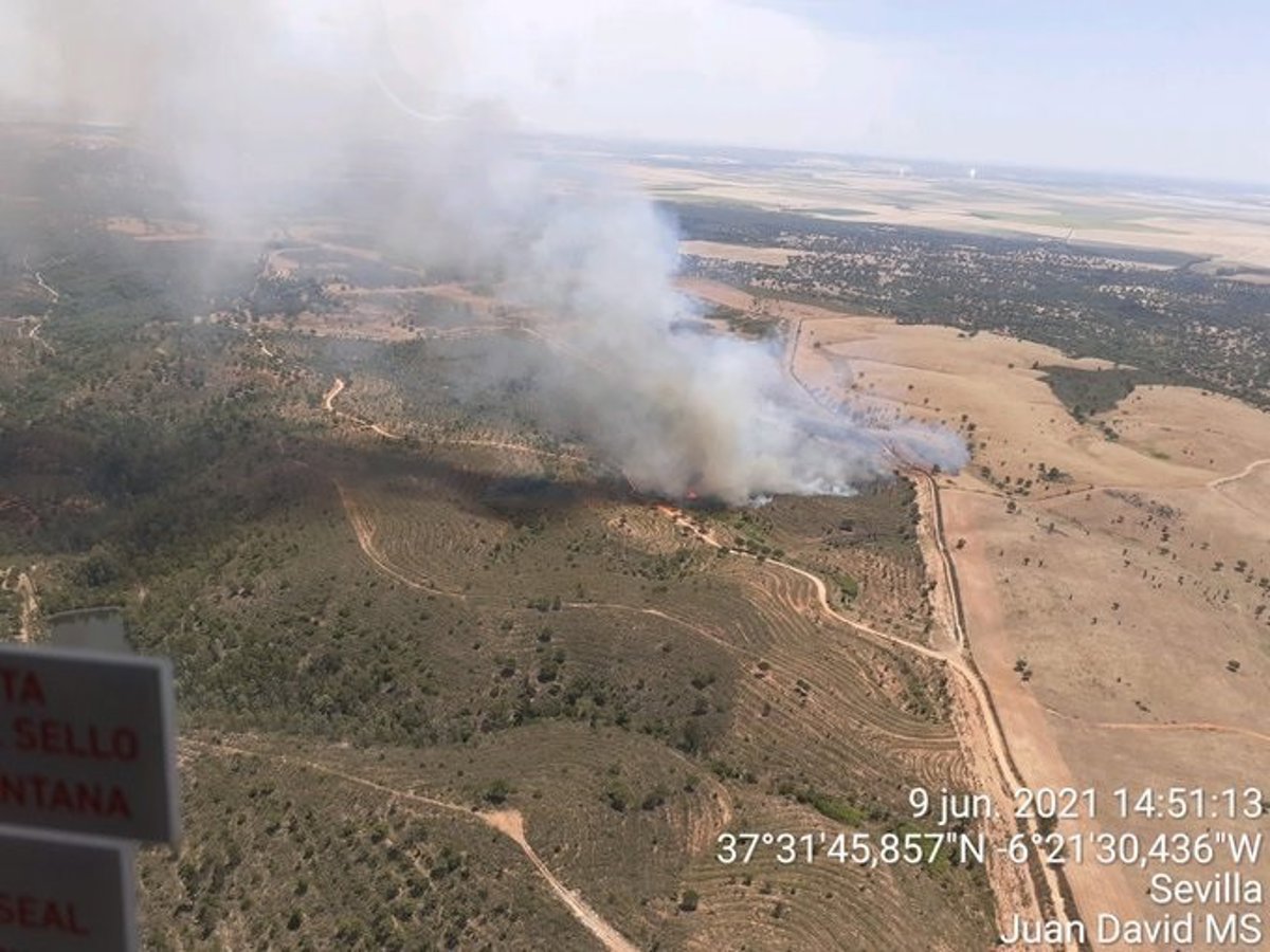 El dispositivo para la prevención y extinción de incendios forestales en Andalucía (Plan Infoca) trabaja en la tarde de este lunes en sofocar un fuego declarado en el paraje Charcofrío del término municipal de Aznalcóllar (Sevilla).