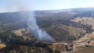 El Servicio de Extinción de Incendios Forestales de Andalucía, el Plan Infoca, trabaja en las labores de extinción de un incendio forestal declarado este miercoles en el paraje Rivera Benalija, en el término municipal de Alanís (Sevilla).