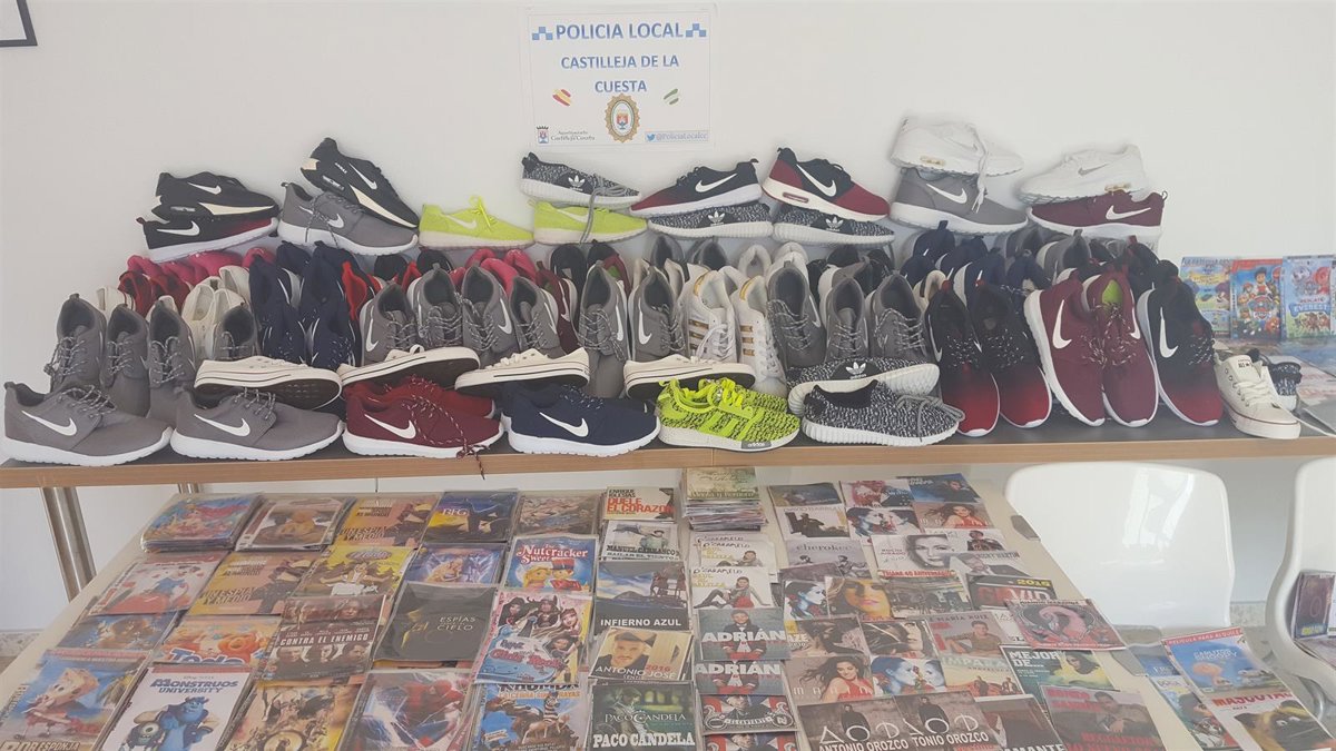 La Policía Local de Castilleja de la Cuesta (Sevilla), en colaboración con los efectivos de la Guardia Civil de dicho municipio y de Gines, han intervenido un vehículo en cuyo interior fue localizada una partida de productos falsificados, con destino al mercadillo del municipio.
