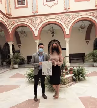 La delegada de Juventud del Ayuntamiento de Alcalá de Guadaira (Sevilla), Rosa Carro (Cs), conel diseñador Javier Ordóñez. - AYUNTAMIENTO DE ALCALÁ DE GUADAIRA (SEVILLA).