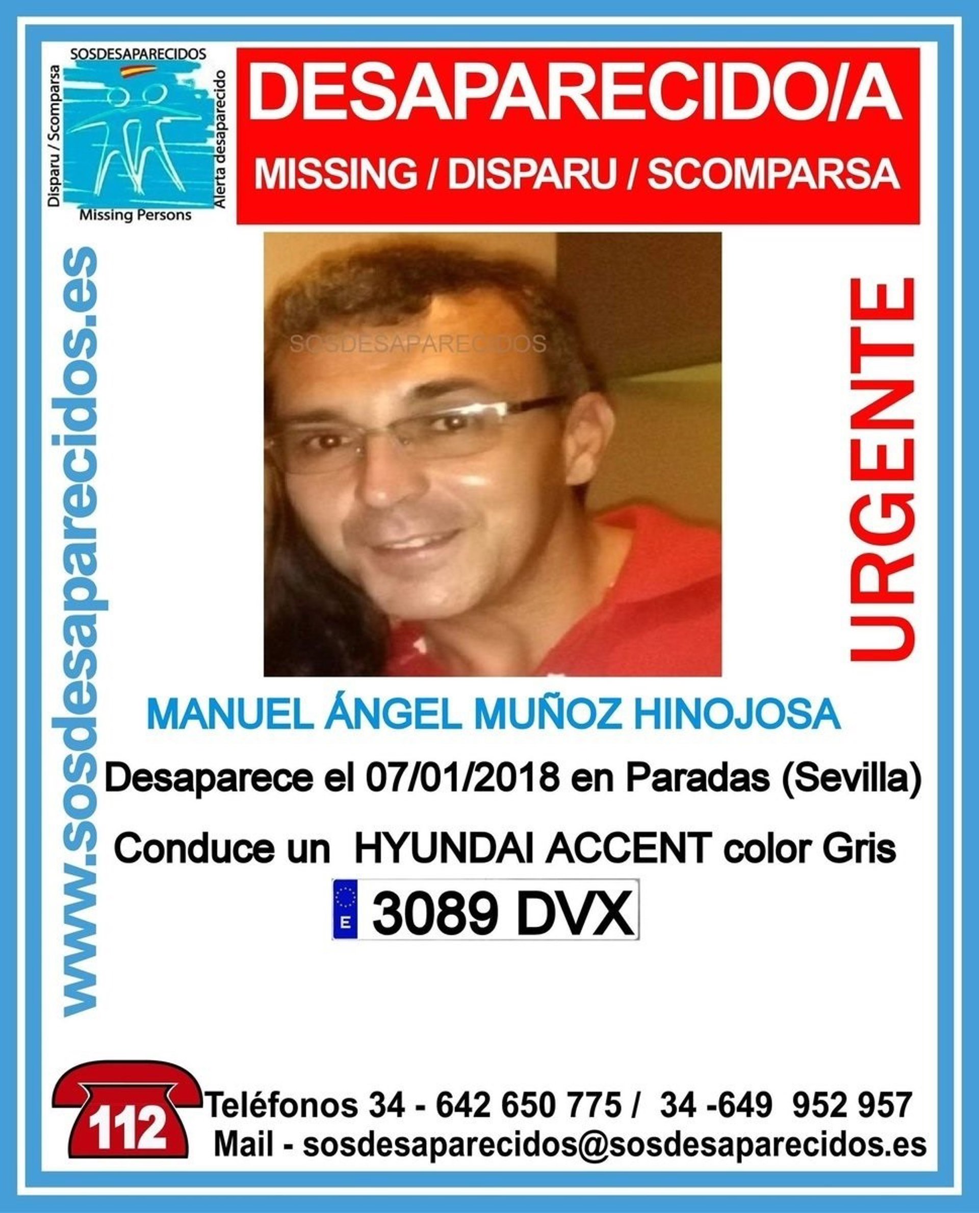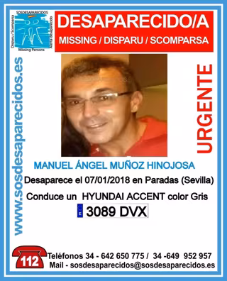 La Guardia Civil ha activado un operativo para localizar a Manuel Ángel Muñoz Hinojosa, nacido en el año 1972, desaparecido en la localidad de Paradas (Sevilla) desde la madrugada del pasado domingo, cuando fue visto por última vez en torno a las 02,00 horas, según han informado a Europa Press fuentes de la investigación y el alcalde del municipio, Rafael Cobano.