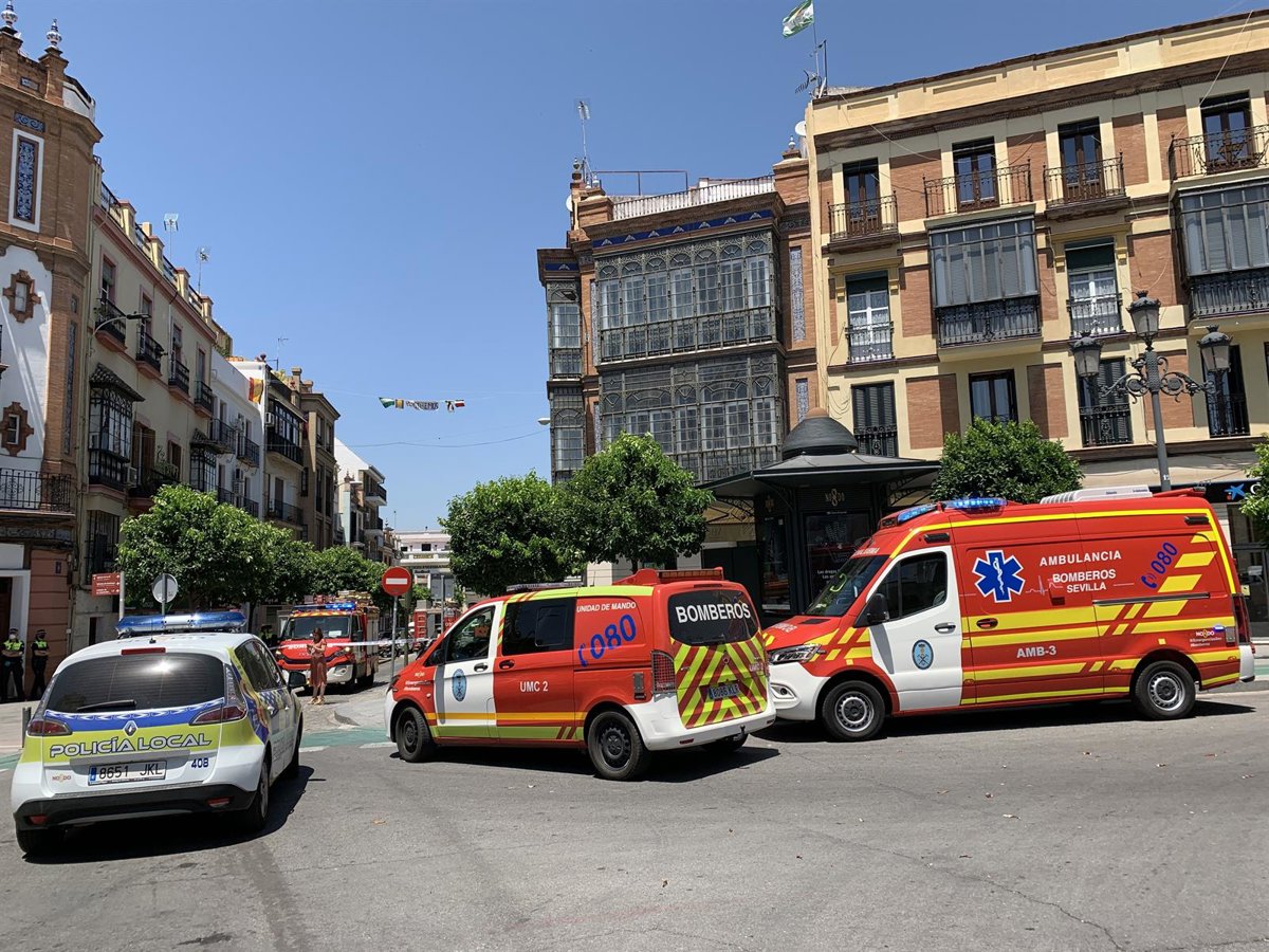 Un edificio de viviendas de la calle San Jorge, en el barrio sevillano de Triana, ha sido desalojado la mañana de este jueves y los bomberos están apuntalando parte del mismo, después de que un particular avisase de que apreciaba posibles riesgos de "colapso" con relación a un pilar del inmueble.