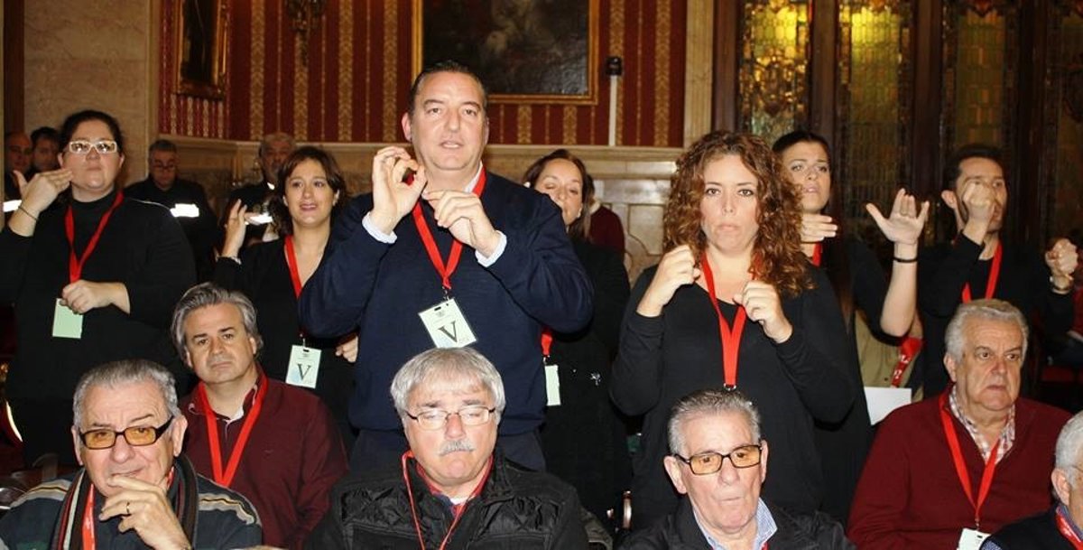 En el caso de los intérpretes de lengua de signos de Canal Sur TV, en huelga indefinida contra la decisión de la empresa de recortar el 40 por ciento de su jornada laboral, sus representantes se han levantado entre las sillas del público y han comenzado a expresarse en lengua de signos, tras lo cual la presidenta del pleno, la concejal socialista Carmen Castreño, les ha pedido que no alterasen el transcurso de la sesión y, al persistir la situación, les ha pedido que abandonasen el salón de plenos.