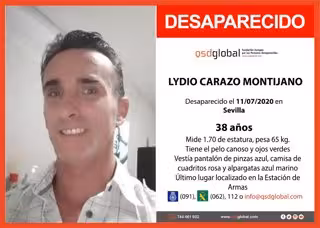 La Guardia Civil y la Fundación Europea para las Personas Desaparecidas QSD han alertado este martes de la desaparición de Lydio Carazo Montijano, un hombre de 38 años al que se le perdió la pista el pasado sábado 11 de julio en Sevilla capital.