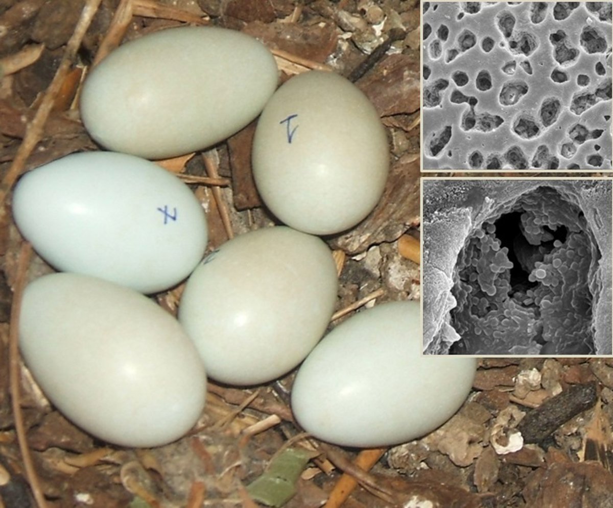 En este trabajo, también han descubierto que las abubillas han desarrollado en sus huevos un rasgo excepcional (hasta ahora no encontrado en ninguna otra especie de ave) consistente en la presencia en su superficie de innumerables pequeñas depresiones que no atraviesan la cáscara por completo, y que parecen servir específicamente para retener la secreción con bacterias recubriendo el huevo.