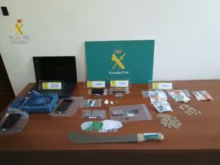 En el registro, los agentes incautaron 3,1 gramos de cocaína base y once dosis de cocaína dispuesta para la venta, así como dos básculas de precisión, útiles para la elaboración de dosis, dinero procedente de la venta del día, así como diversos objetos procedentes de robos en la zona como teléfonos móviles, un ordenador portátil, una playstation 2 y un desfibrilador, los cuales pueden haber servido de pago para la adquisición de dosis de droga.