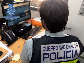 Archivo - Un agente investigando ante un ordenador - POLICÍA NACIONAL - Archivo