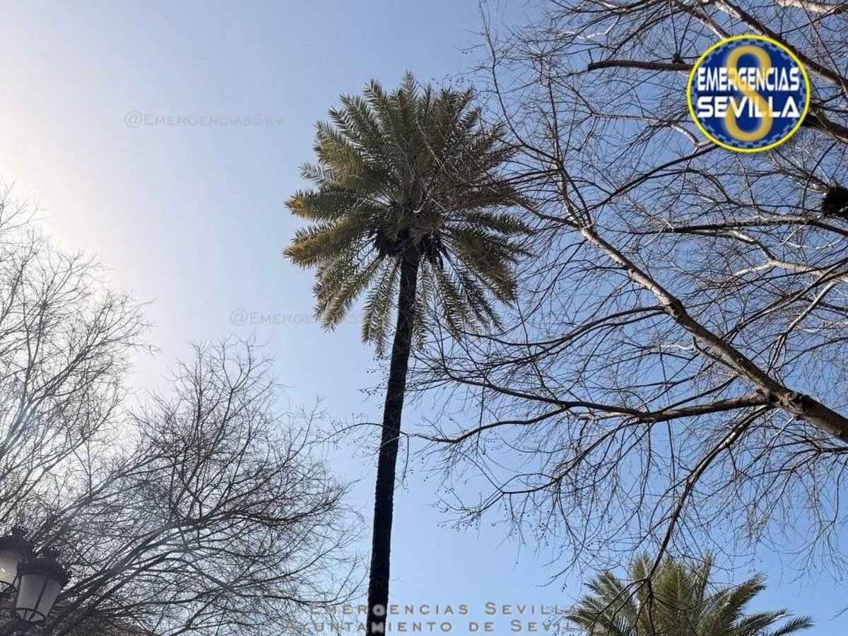 Palmera inspeccionada en la Plaza del Duque de Sevilla. - EMERGENCIAS SEVILLA