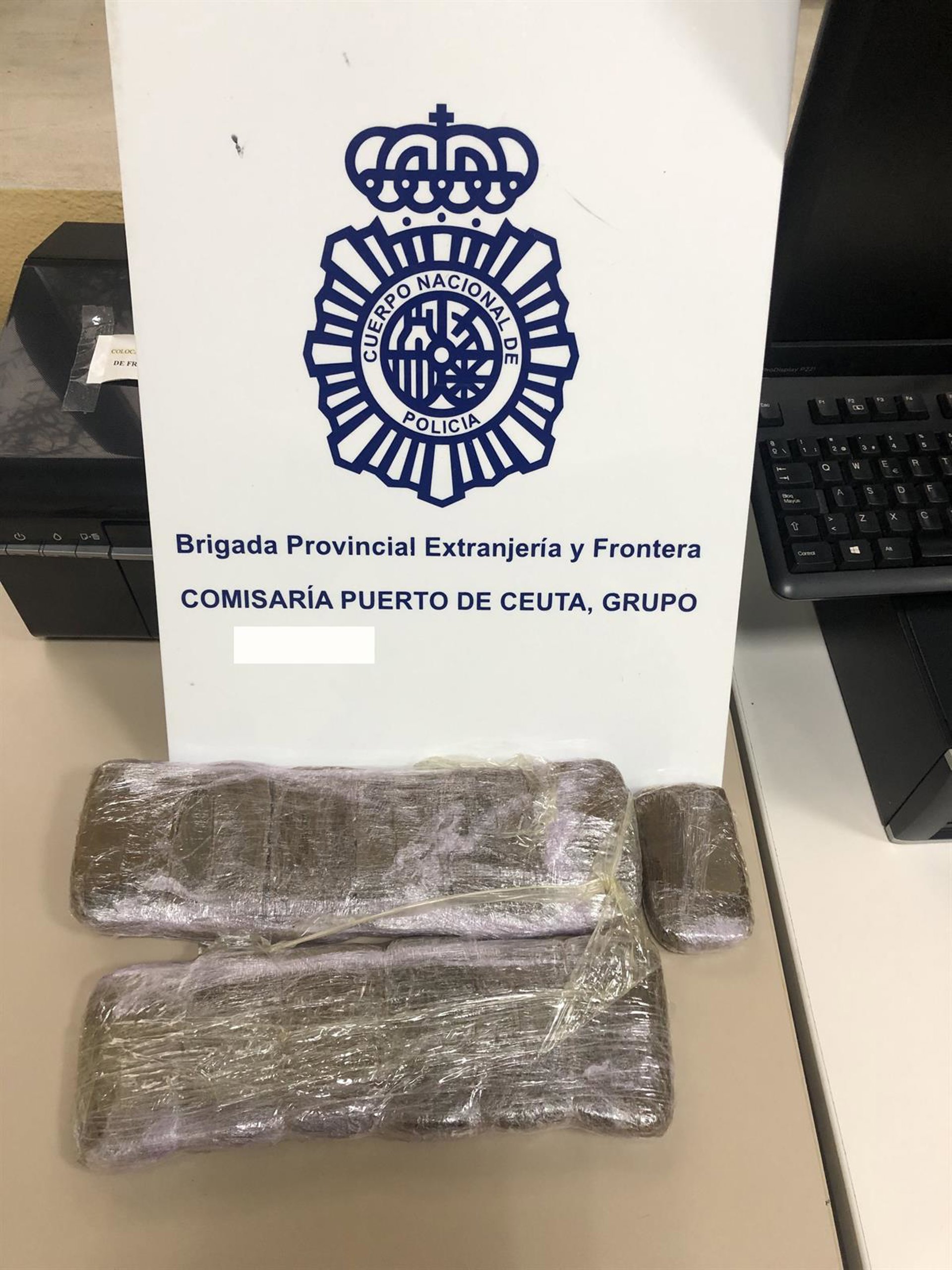 Agentes de la Policía Nacional destinados en la Comisaría del Puerto de Ceuta han detenido a una mujer natural de Sevilla de 42 años de edad sin antecedentes policiales cuando pretendía embarcar hacia Algeciras (Cádiz) con 23 placas rectangulares de hachís adosadas a su torso.