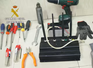 Los agentes se dispusieron a realizar una búsqueda intensiva por la que hallaron una furgoneta blanca con dos personas en su interior. En el interior de la misma había objetos que "suelen usarse en robos por forzamiento", como una taladradora, brocas, una batería, destornilladores o aparatos electrónicos como inhibidores de frecuencia, por lo que la Benemérita ha asegurado de que se trataba de "especialistas". Los sospechosos, M.A.C.T. de 27 años y A.S. de 29 años, fueron trasladados, junto a la furgoneta, a dependencias de la Guardia Civil.