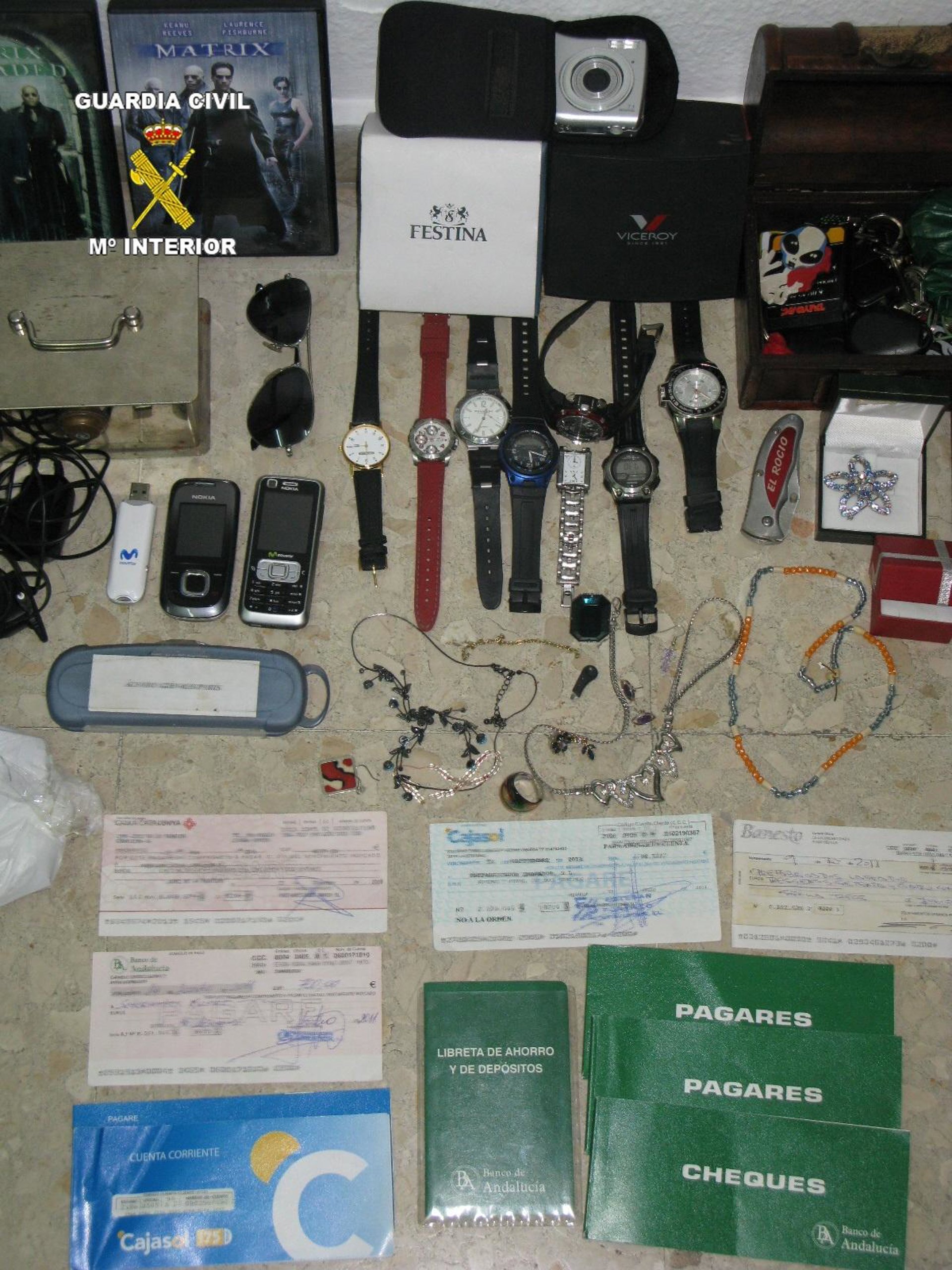 Según ha informado la Guardia Civil en una nota de prensa, los hechos ocurrieron cuando una patrulla de Mairena del Alcor localizó en una urbanización, una furgoneta parada con una mujer dentro y a un hombre, al parecer el acompañante, que portaba una bolsa llena de objetos tales como dos cajas de caudales, relojes, anillos, collares, gafas de sol, así como llaves, lectores de DVD y películas, motivo por el que los agentes sospecharon que podían proceder de un robo reciente.