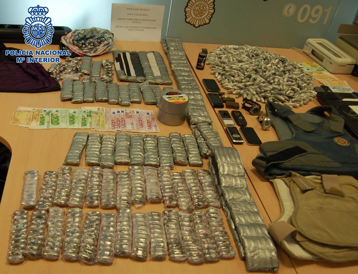 Con el joven liberado, se desplegó un operativo policial para detener a los participantes en los hechos que ha culminado con dos arrestos en España y otros cuatro en Francia. Los investigadores también han practicado dos registros domiciliarios en Marbella y Algeciras en los que se han incautado 17 kilos de hachís y 8200 euros, además de tres chalecos antibalas y varios teléfonos móviles. Por otro lado, en Francia se han intervenido varias cantidades de cocaína, heroína, resina de cannabis, dos armas cortas y 5.000 euros en efectivo.