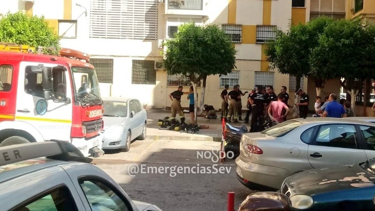 Al percatarse la mujer del detenido del incendio trató ella de controlarlo pero le fue imposible. La mujer resultó afectada por inhalación de humos y quemaduras leves en las piernas, por lo que fue atendida en el lugar por Emergencias Sanitarias 061 y trasladada posteriormente a un centro hospitalario de Sevilla. Otra vecina tambiénresultó afectada por inhalación de humos y ha quedado hospitalizada en un centro sanitario de la capital.