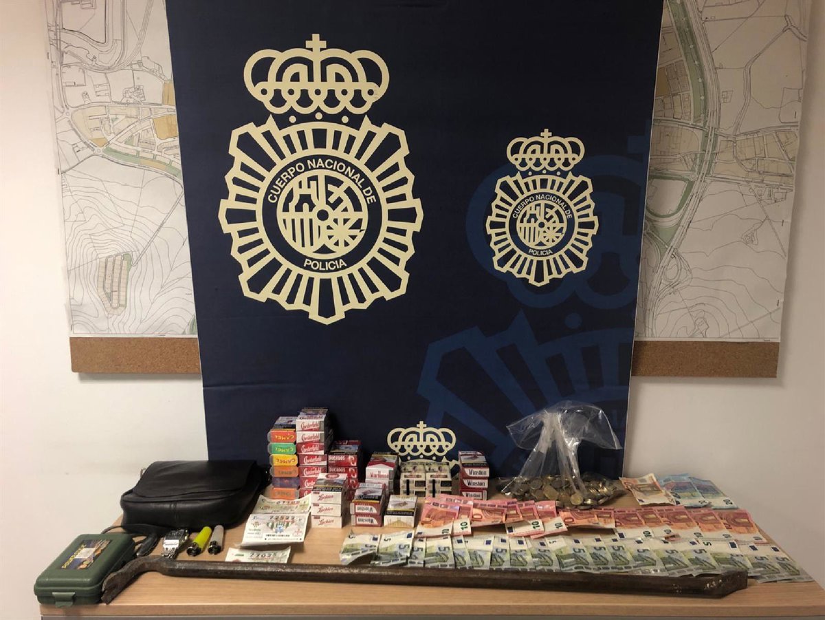 En el cacheo de seguridad al que fue sometido se le intervinieron entre otros efectos 576 euros aproximadamente, unas 33 cajetillas de tabaco, cinco billetes de lotería y un reloj.