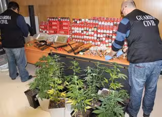 Por todo esto, la Guardia Civil detuvo a M.J.S.H. como presunto autor de un delito contra la salud pública y a su hermano, M.S.H., como presunto cooperador necesario del mismo delito. También se les imputan delitos de tenencia ilícita de armas y sendas infracciones administrativas, pues vendían tabaco sin etiquetar, careciendo el mismo de las marcas fiscales correspondientes.