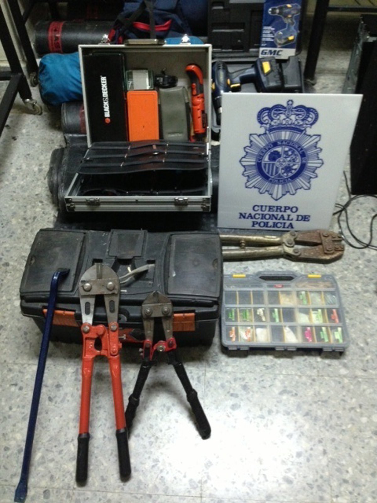 Logrado esto, la Policía creó un dispositivo que culminó con su detención y el registro del domicilio de ambos, donde se recuperaron numerosos artículos procedentes presuntamente de los robos denunciados, así como las supuestas herramientas y útiles que empleaban para cometer los delitos como eran palanquetas o cizallas.