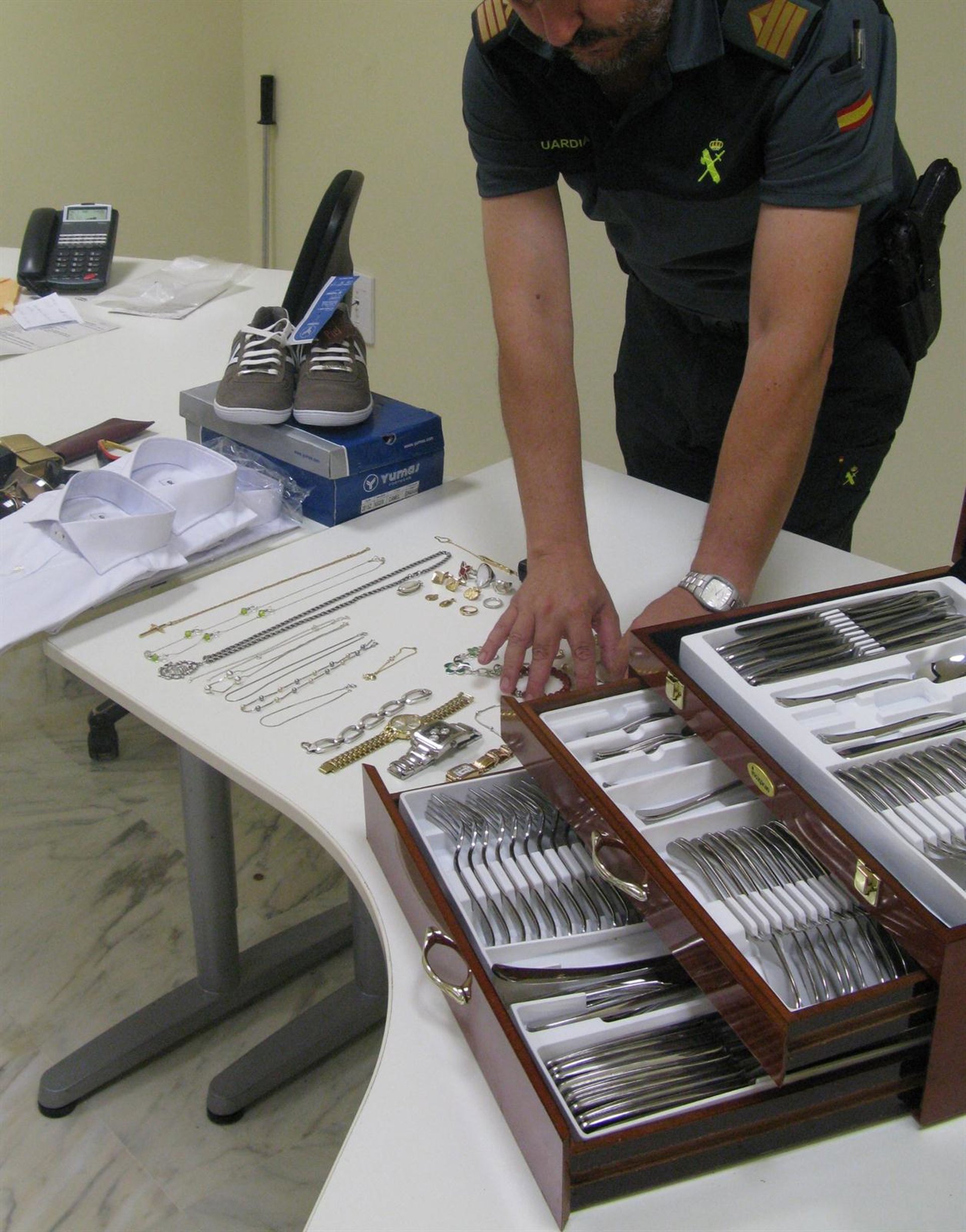 En su interior, la patrulla del Instituto Armado localizó, entre objetos, un televisor de plasma, una lavadora, videoconsolas y otros aparatos electrónicos, así como anillos, colgantes y pulseras de oro.