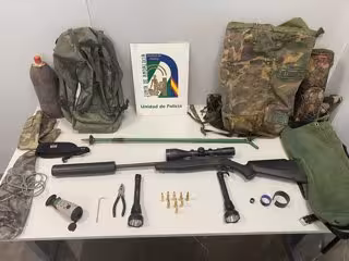 Los dos jóvenes iban vestidos con ropa de camuflaje, pasamontañas, fuertemente equipados y portaban una mochila de grandes dimensiones en cuyo interior llevaban los restos de un jabalí despiezado. Además, portaban un rifle de alto alcance con visor, silenciador, visor térmico independiente, linternas, alicates, varilla con soporte para asegurar el tiro, diversa