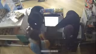 Imagen de los dos detenidos cuando cometían uno de los robos en establecimientos locales. - GUARDIA CIVIL