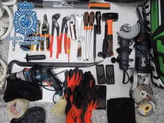 Entre los objetos intervenidos en el momento de la detención, se encuentra una mochila, diversas herramientas, guantes, pasamontañas y una cuerda, todos estos efectos empleados para acceder a la cubierta y practicar el agujero.