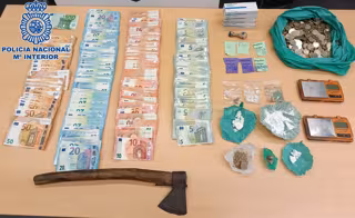 En una nota de prensa, la Policía ha explicado que el pasado 17 de mayo, previa autorización judicial, un equipo de agentes llevó a cabo una entrada y registro en las viviendas. En estos dos pisos, los agentes encontraron cocaína, heroína, una máquina tragaperras para el entretenimiento de los 17 individuos presentes en el momento del registro, un hacha y 7.200 euros en efectivo.