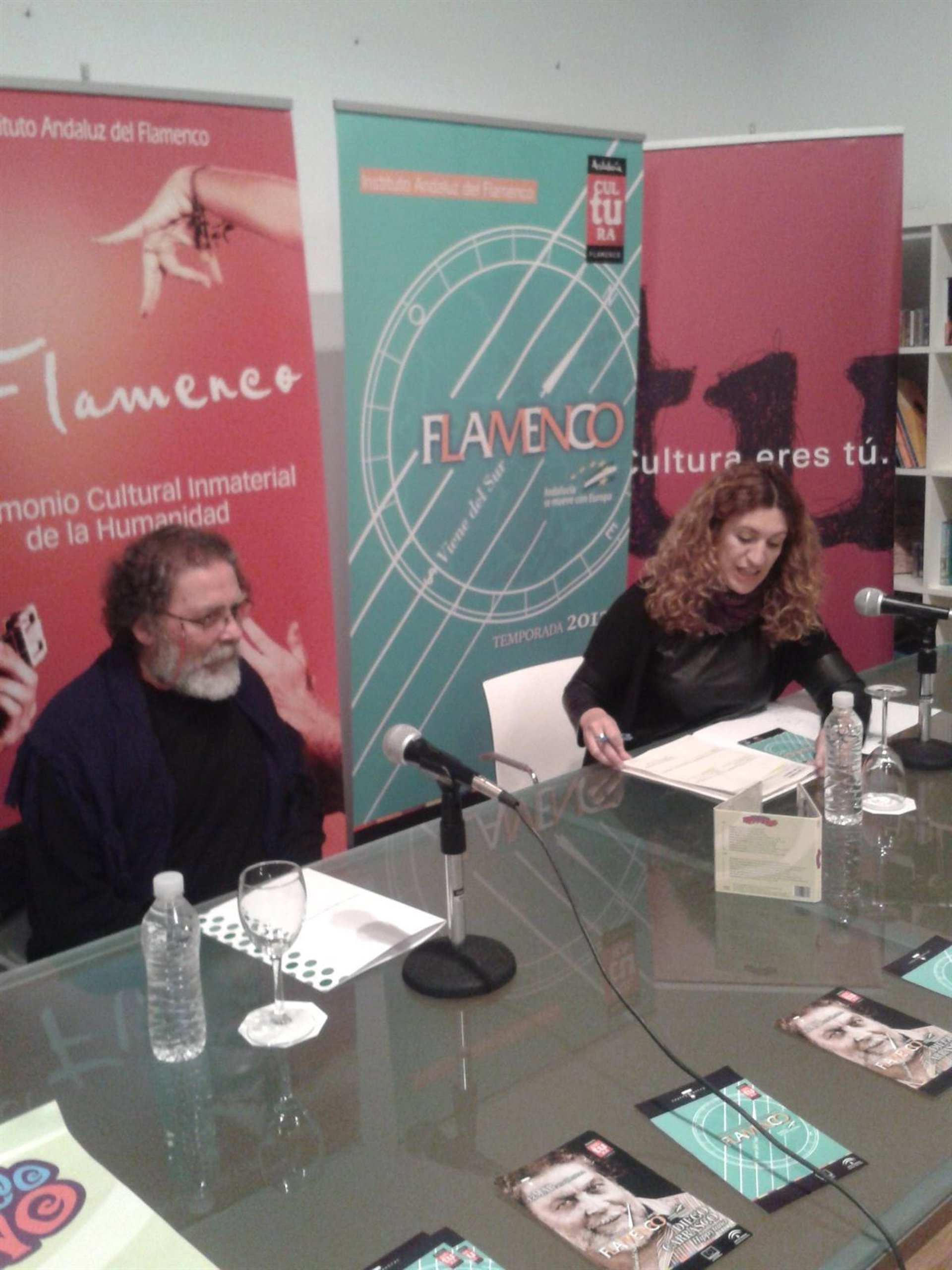 La directora del Instituto Andaluz de Flamenco (IAF), María de los Ángeles Carrasco, y el guitarrista, compositor y cantaor, Diego Carrasco han presentado 'Hippytano', su último trabajo que forma parte de la programación del ciclo 'Flamenco viene del Sur' y que se presentará en el Teatro Central de Sevilla el próximo martes 12 de marzo.
