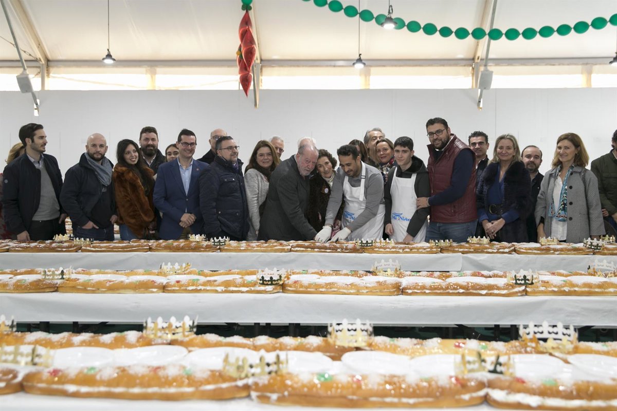 Incluido en la campaña 'Sabores de la Provincia', de promoción de los productos agroalimentarios y la gastronomía de la provincia, son unas 3.500 raciones las que han salido de un roscón de más de 300 metros de longitud, 300 metros de brioche, 270 kilos de masa, 250 kilos de nata, 50 kilos de fruta y un peso aproximado de unos 750 kilos y que se ha repartido durante el evento, de entrada gratuita. Los asistentes han podido realizar sus donativos en las mesas destinadas a tal efecto y que han estado atendidas por voluntarios de Andex.