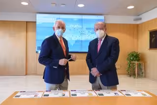 El asesor de Cooperación al Desarrollo, José Luis Pelayo, y el presidente de la Diputación, Fernando Rodríguez Villalobos. - JESUS BARRERA/DIPUTACIÓN DE SEVILLA