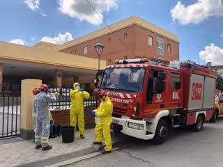 La Diputación de Sevilla ha comenzado este lunes con las labores de desinfección en las residencias de mayores de su competencia, concretamente en 'La Milagrosa', de Marchena, donde los bomberos del Servicio Provincial han realizado dichos trabajos.