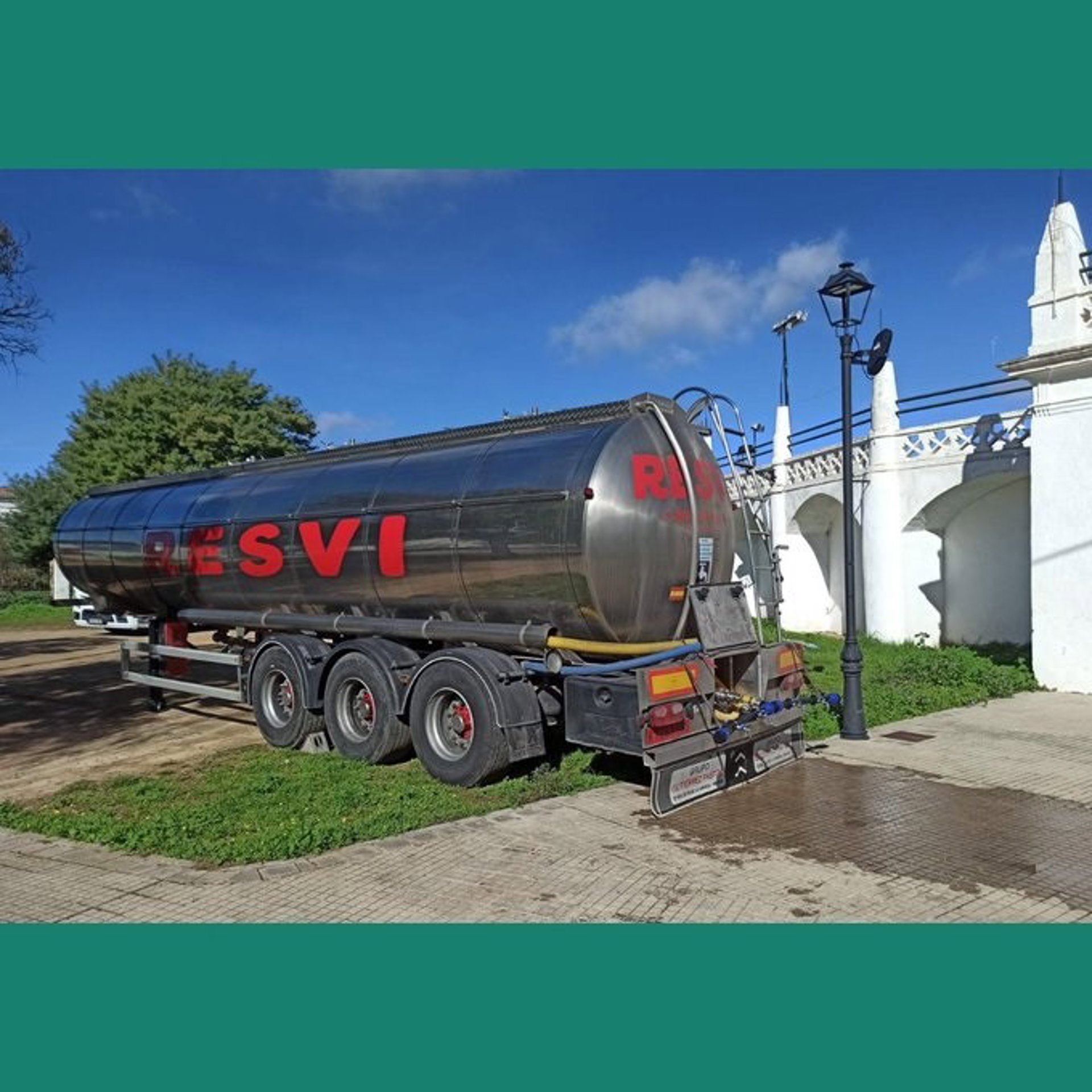 Camión cisterna instalado por el Ayuntamiento de Cazalla de la Sierra (Sevilla) junto a la plaza de toros de la localidad. - AYUNTAMIENTO CAZALLA DE LA SIERRA