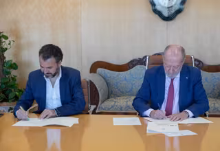 Firma de la cesión de parte de la SE-6103 a La Campana entre el presidente de la Diputación, Fernando Rodríguez Villalobos, y el alcalde del municipio, Manuel Fernández. - DIPUTACION DE SEVILLA