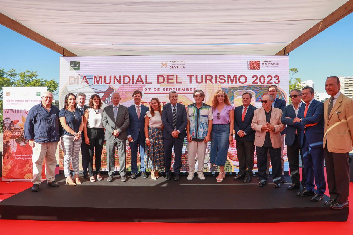 Archivo - El presidente de la Diputación, Javier Fernández (c) posa en la foto de familia de la presentación de la campaña de promoción turística 'Sevilla también'. - Rocío Ruz - Europa Press - Archivo