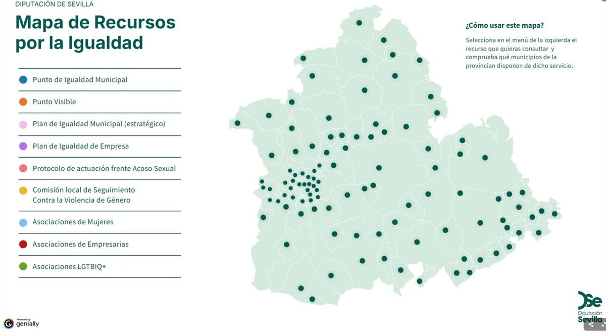 El Área de Cohesión Social e Igualdad de la Diputación de Sevilla ha lanzado en su web el 'Mapa Provincial de Recursos por la Igualdad y la Diversidad', una "herramienta clave" para visibilizar y acercar a la ciudadanía los servicios disponibles en los municipios de la provincia en esta materia.