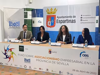 La vicepresidenta de Prodetur, Manuela Cabello, la alcaldesa de Espartinas, Cristina Los Arcos (PSOE), el vicepresidente de la Confederación de Empresarios de Sevilla (CES), Juan Pedro Calvente, y la presidenta de la Asociación Empresarial de Espartinas (Asedes), Marina Duarte, han participado en el "foro motivacional" sobre asociacionismo empresarial que se ha celebrado en el municipio aljarafeño. Con esta serie de sesiones, la sociedad provincial y la CES, en colaboración con los consistorios sevillanos, pretenden "incrementar el asociacionismo" en el tejido empresarial sevillano para "mejorar su competitividad".