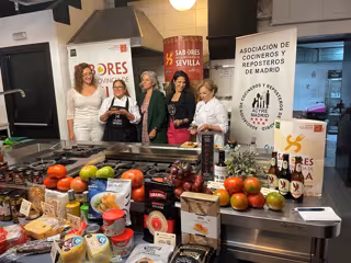 La segunda jornada de la agenda de actividades de la II Semana de Sevilla en Madrid, organizada por la Diputación de Sevilla a través de Prodetur, en colaboración con catorce asociaciones empresariales sevillanas, ha arrancado este martes con la presentación de un menú elaborado con productos 'Sabores de la Provincia de Sevilla' a miembros de la Asociación Mujeres Españolas en Gastronomía (MEG), integrada en la actualidad por 1.500 personas de diferentes perfiles dentro del ámbito de la restauración, desde la cocina, sala, sumilleres y producción). Más de la mitad de los trabajadores en el sector de la hostelería son mujeres, "pero muy pocas son visibles, especialmente en el mundo de la alta cocina", ha subrayado la Diputación en una nota de prensa.