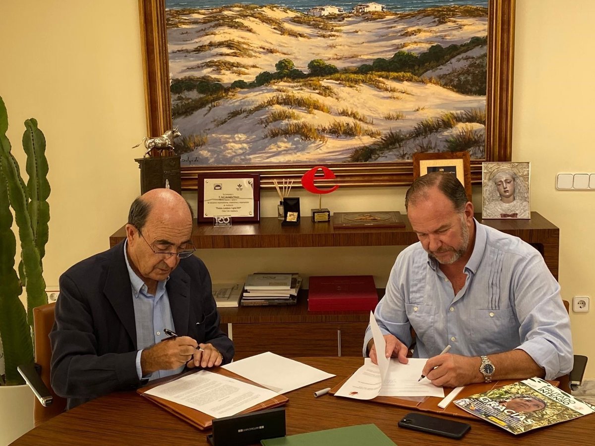 El presidente de la Fundación Caja Rural del Sur, José Luis García-Palacios Álvarez, y el presidente del Consejo Regulador de la Denominación de Origen Estepa, José María Loring Lasarte, firman un convenio de colaboración - FUNDACIÓN CAJA RURAL DEL SUR