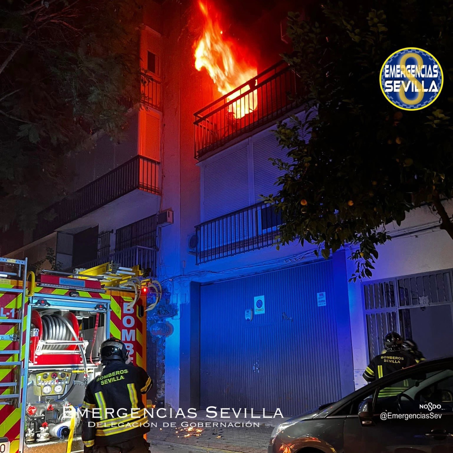 Los Bomberos actuando en la calle Andrés Bernáldez en el incendio de una vivienda. - EMERGENCIAS SEVILLA