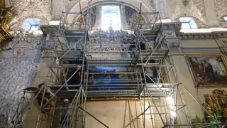 Según una nota de prensa, desde el pasado lunes un equipo multidisciplinar del Instituto Andaluz del Patrimonio Histórico (IAPH) está llevando a cabo las actuaciones operativas para el montaje de las obras en el muro del antepresbiterio, al lado del evangelio, y al lado de la epístola.