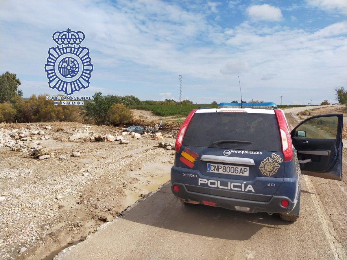 Patrullero de la Policía Nacional que logró rescatar con graves síntomas de hipotermia a dos de las tres personas que fueron arrastradas por la tromba de agua en Écija. - POLICIA NACIONAL